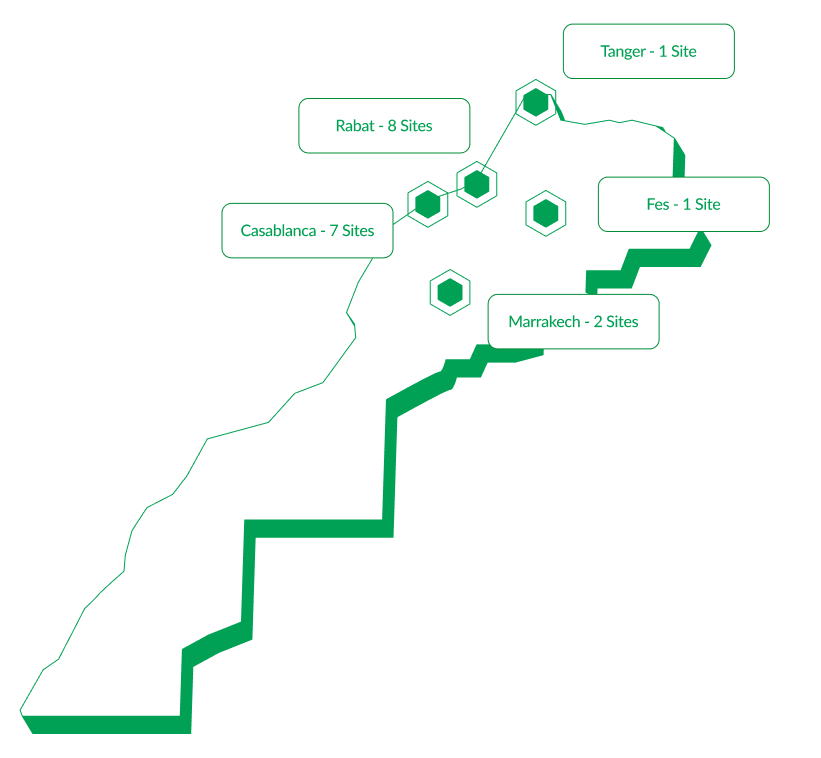 L’EMSI compte au total 19 sites dans le Royaume du Maroc (Casablanca, Rabat, Marrakech, Tanger et Fès). Chacun de ces sites compte de nombreuses salles de cours, laboratoires et centres de calcul dotés de matériels didactiques sophistiqués et de dernière génération pour les besoins des travaux pratiques, mini-projets, projets et recherche scientifique.